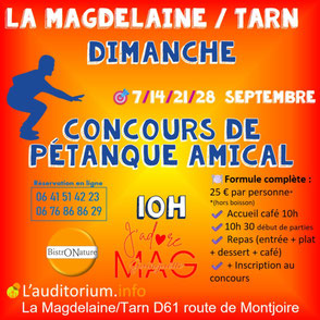 Réservation : 06 41 51 42 23 / 06 76 86 86 29
